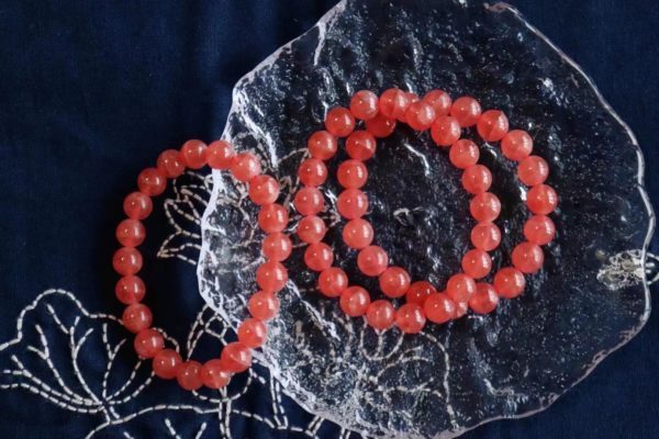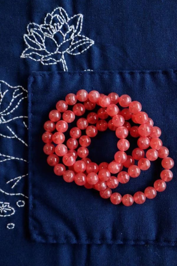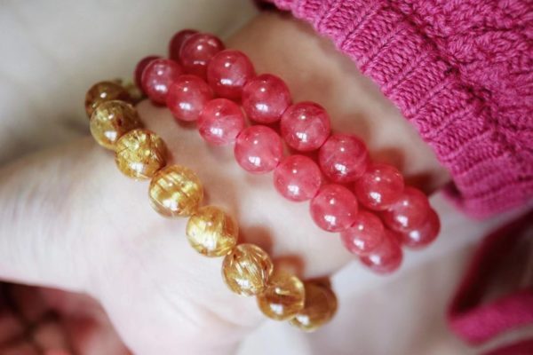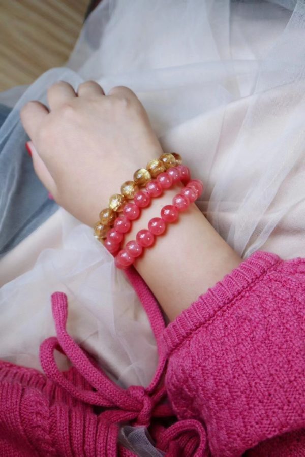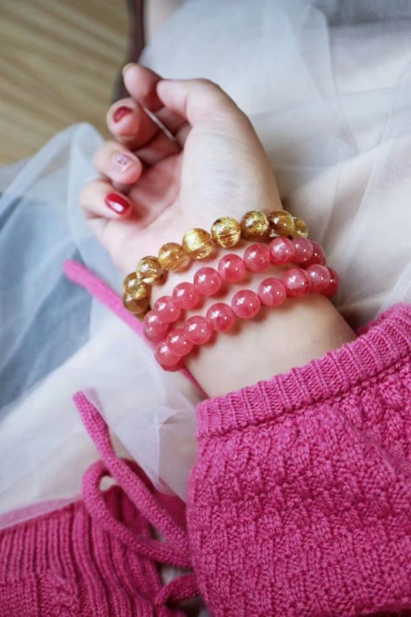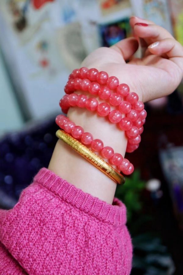 9mm直径的几条红纹石,不大不小,上手是恰恰好。摸着,温温润润,戴个2条,爱意长久。