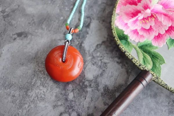 奉上南红玛瑙精工平安扣,正面雕刻蝶恋花,厚实饱满,可承载好运,绿松石细链点缀,妥妥滴中国风~