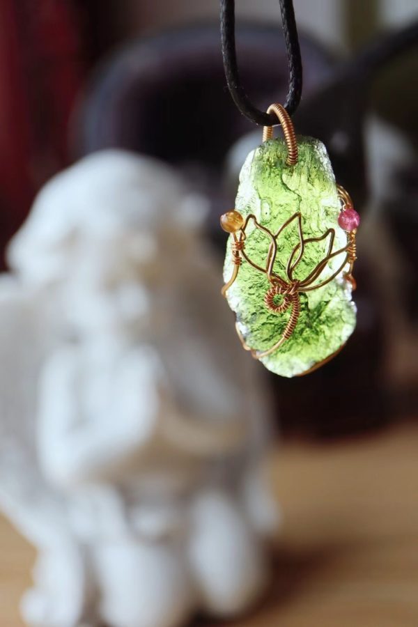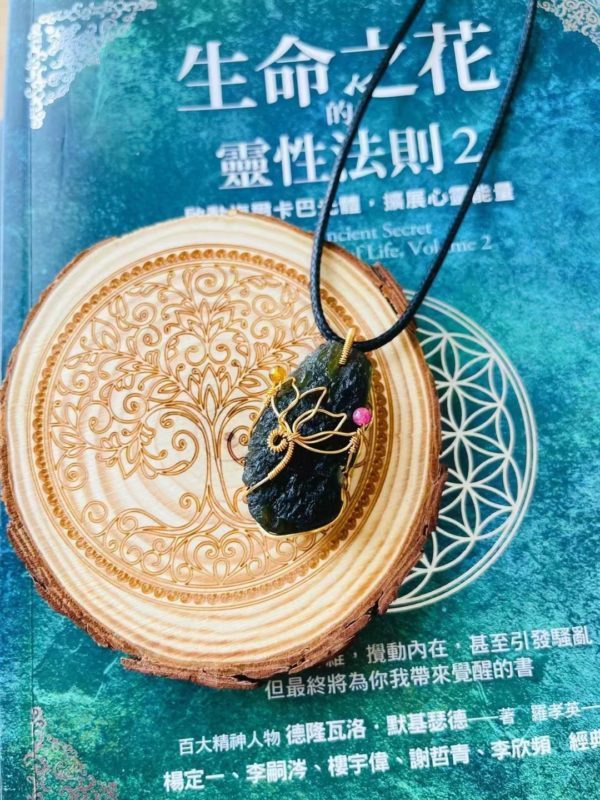 心轮-捷克陨石莲花项链,纯手工绕线,莲花盛开代表着生命的绽放,而这螺旋能量的中心,便是心脏,那个平静的核心。人如莲,花开见佛性。