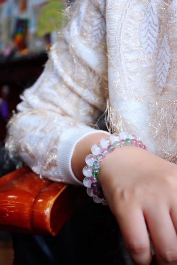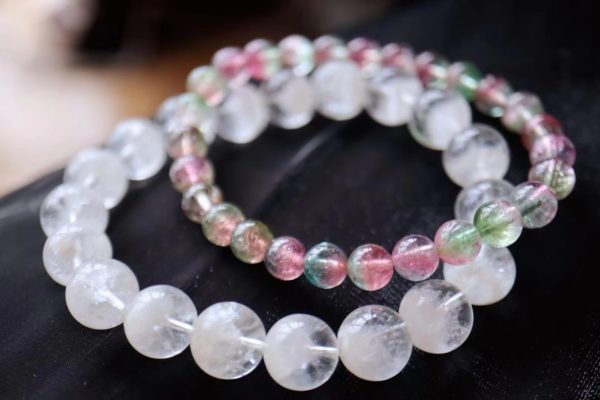 一条很精致的小西瓜碧玺,配白幽灵绝了