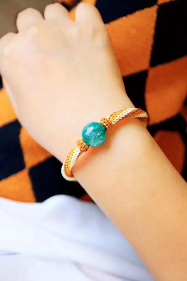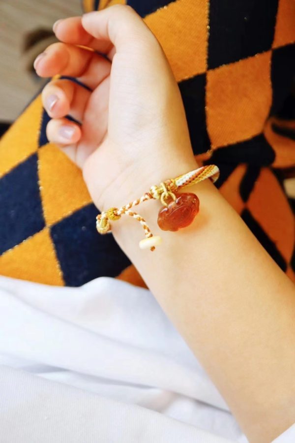 一颗祖母晶,贵气的色,用贵气的黄色丝线辅佐缠绕,再配上一个如意锁,万事皆如意。