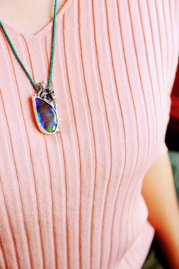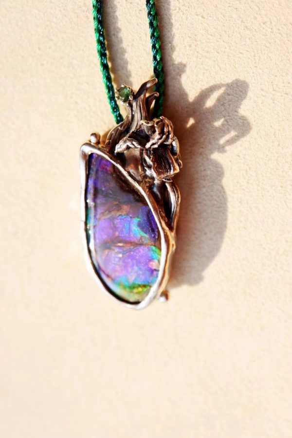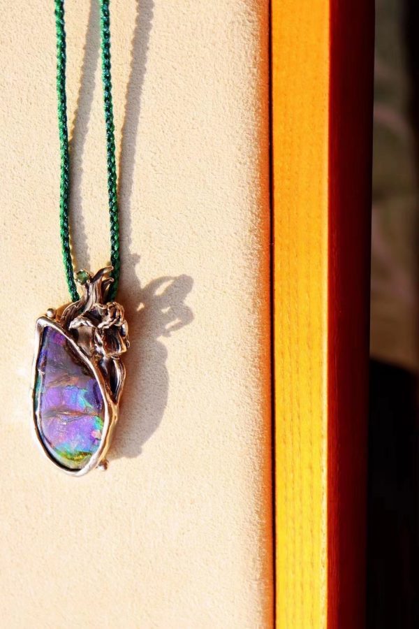 斑彩石依旧是双面佩戴的高品级,立体雕花鸢尾花,我还闻到了思念的味道。