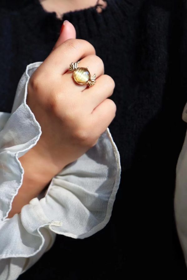钛晶正圆,超级顺发板钛猫眼,纯手工18k黄金镶嵌,小翅膀可可爱爱,还有个尖尖角。这关键字,爱!钛晶戒没收过的,收它,小完美一枚。