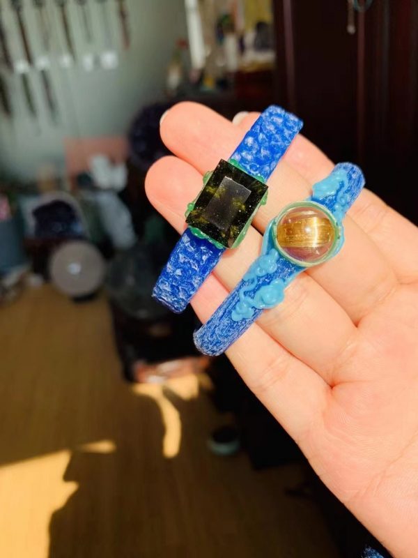 我的天,又是两个神镯!!!一个钛晶一个捷克,先下手为强啊。我看了,出来都绝美!肌理太好看了![爱心]