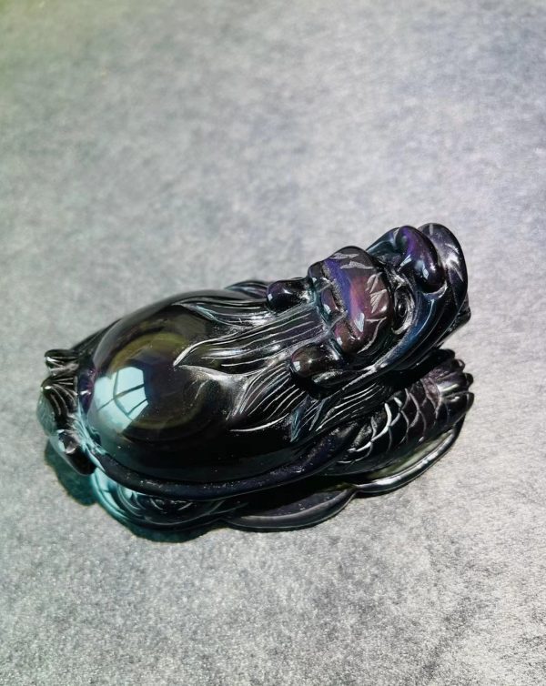 蹦跶出来一只小神兽,灵兽之中最祥瑞,能承载福德,乃长寿、吉祥和权威的象征,龙头赐福、龟尾制煞,这紫色的彩虹眼,有点美